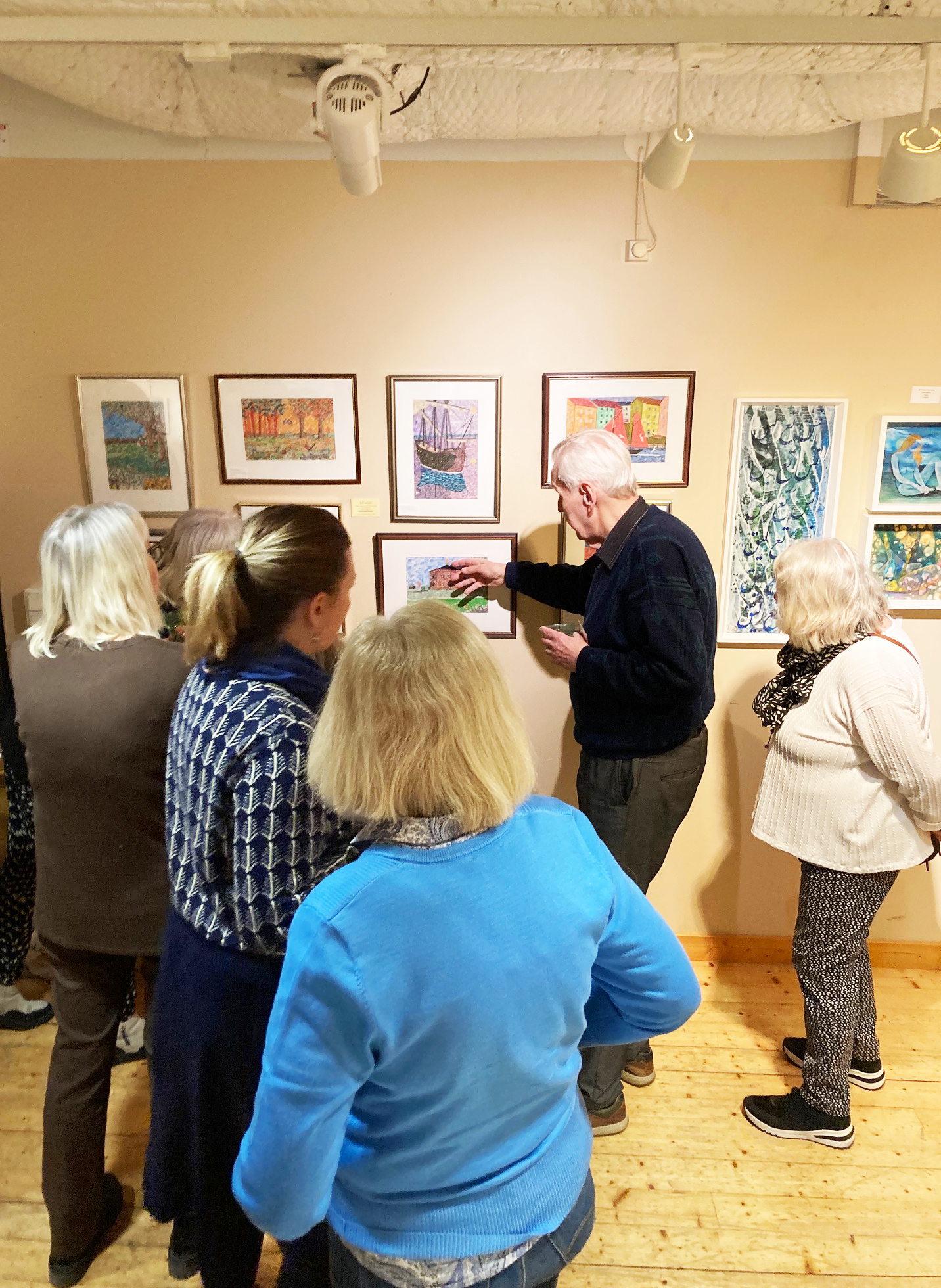 Vi har möten ungefär en gång i månaden, oftast digitalt. Tillsammans besöker vi utställningar och konstrundor för att välja ut konstverk till lotteriet, och planerar aktiviteter som utflykter, resor och museibesök. Vi ansvarar också för att hålla våra medlemmar informerade om vad som händer i föreningen.